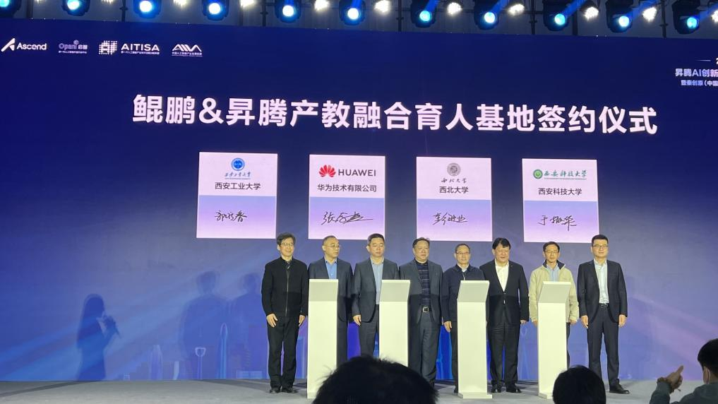 2022年11月16日,陕西省科技厅联合华为集团举办的秦创原(中国)人工智能开发者大会在西安浐灞国际会议中心开幕,陕西省科技厅副厅长韩开兴出席会议并致辞。会上举行了鲲鹏&昇腾产教融合育人基地签约仪式,太阳成集团tyc122cc经理郭永春、经理助理吴杰出席签约仪式并签约。