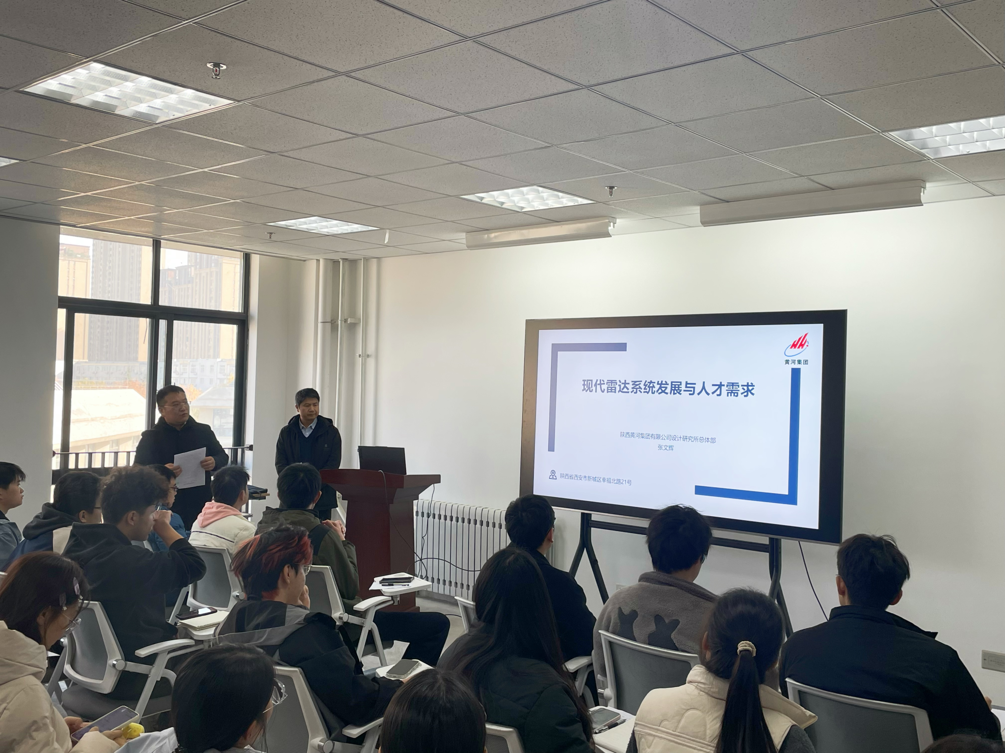 11月21日下午,太阳成集团tyc122cc“知行讲坛”顺利举行,本次特邀陕西黄河集团有限公司设计研究所总体部主任设计师张文辉,作题为“现代雷达系统发展与人才需求”的讲座。讲座由公司教师陈丁副教授主持,五十余名师生聆听了讲座。