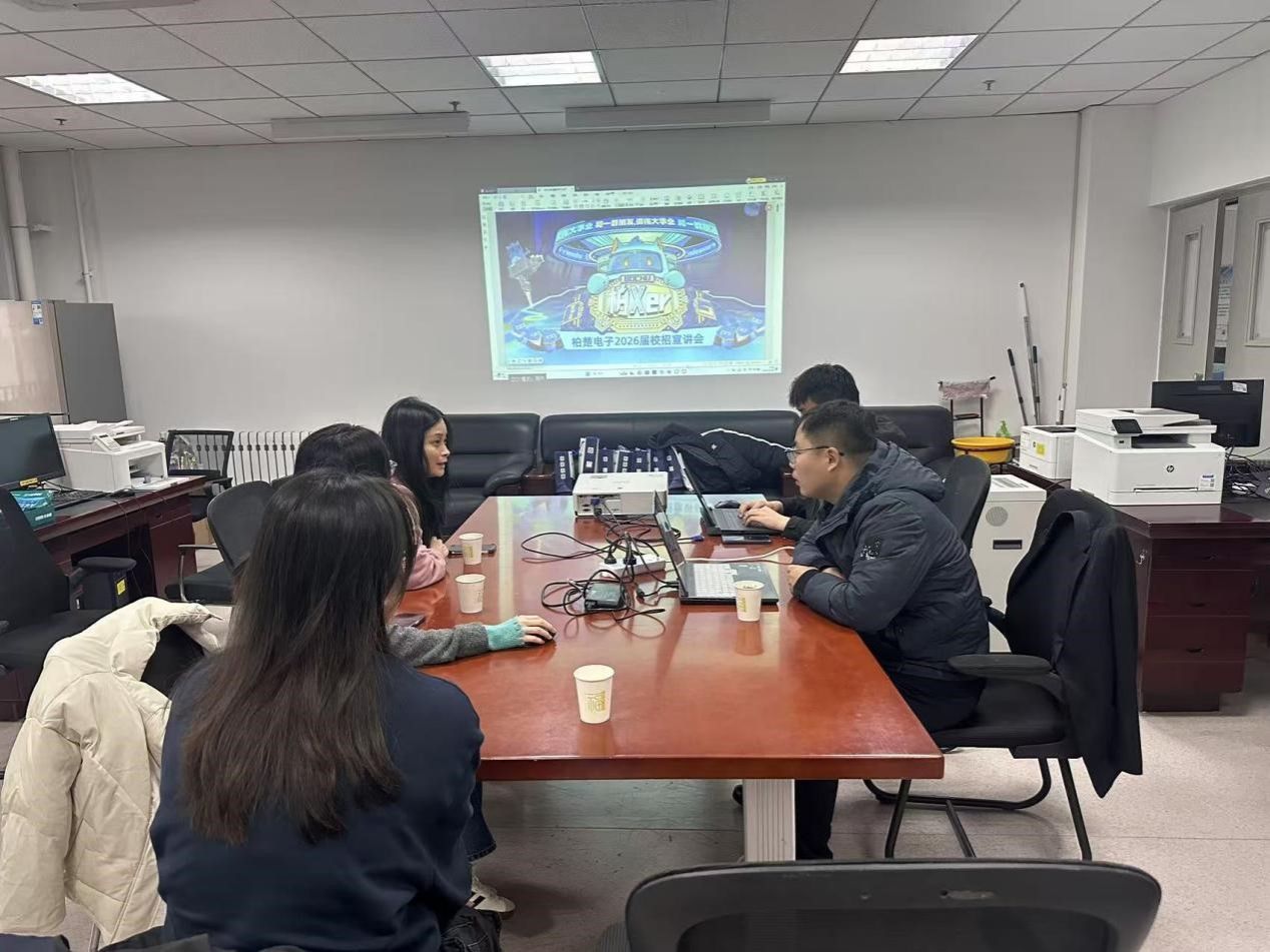 会议伊始,企业方通过PPT演示系统介绍了公司在精密光学领域的目标市场、技术资质与人才培养体系。随后,谢达老师分享了高校在校企合作方面的成功经验,重点探讨了“共担项目、资源共享”的实施路径,并就学术研究与企业应用的交叉融合提出了建设性意见。接着团队成员向企业代表介绍了我们团队在振镜方面目前取得的突破,并表明了合作的意向。交流环节结束后,在谢达老师的陪同下,企业代表通过门口展板详细了解团队在光电技术领域的研究成果与创新实践。最后,双方就员工实习的薪资待遇、职业发展通道及生活保障等具体事宜进行了务实沟通,为后续深化合作奠定了坚实基础,也为团队成员了解就业市场打开了新思路。
