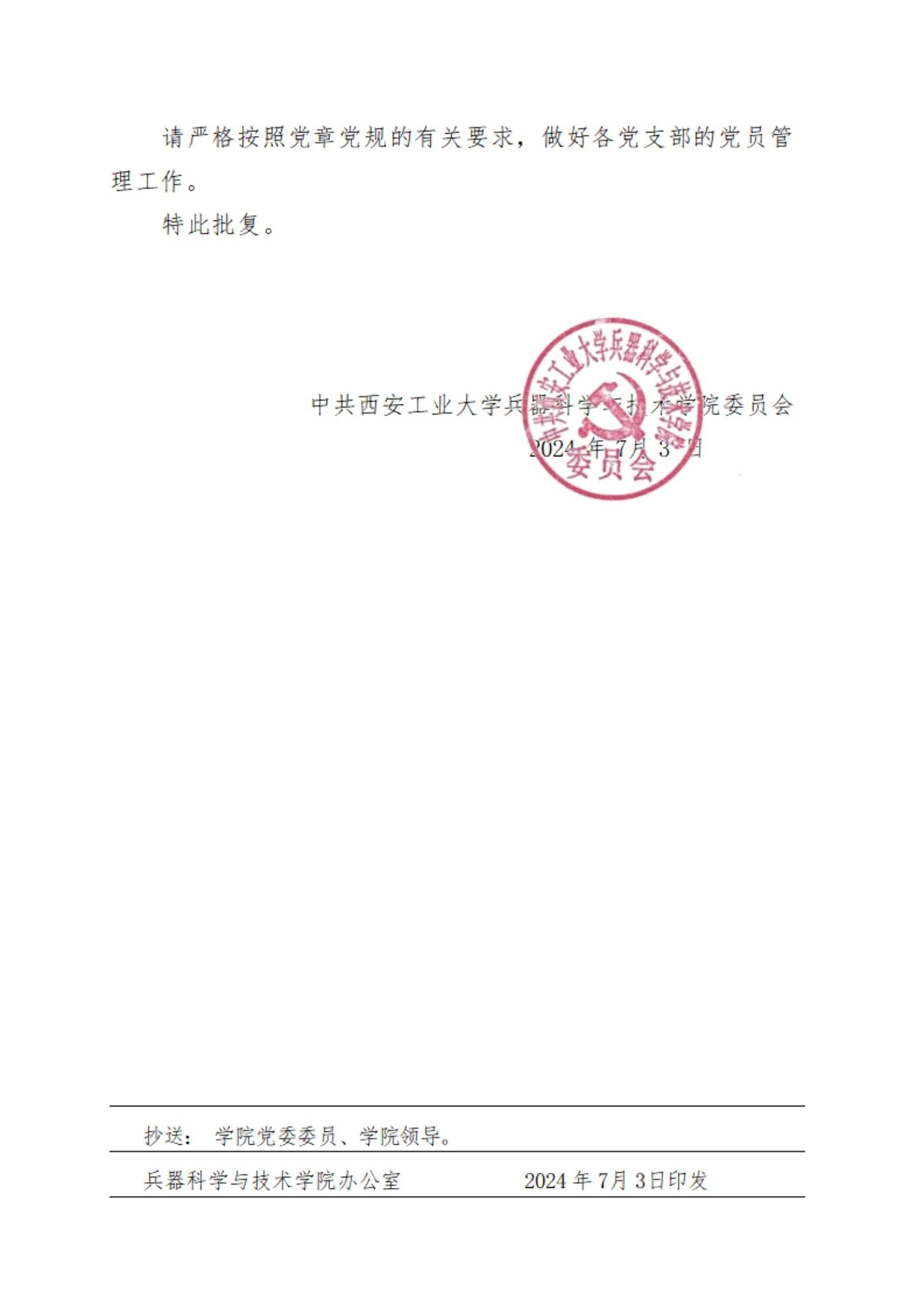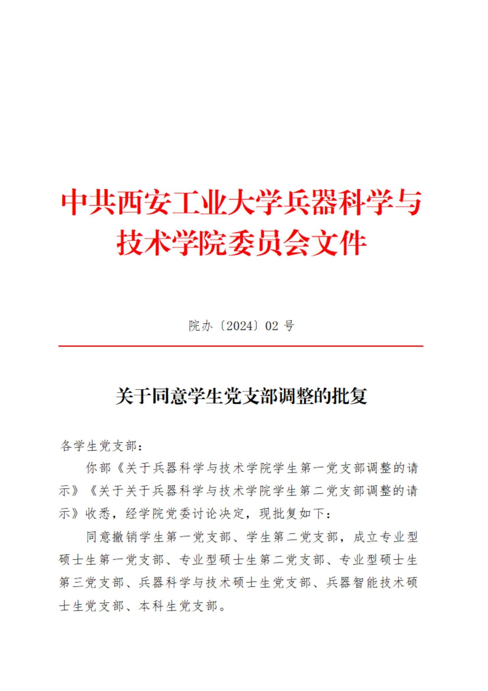 为持续推动基层党组织党建工作全面高效开展,2024年7月1日,兵器科学与技术公司党委经讨论决定,同意将原有2个员工党支部调整为6个员工党支部,并上报公司党委组织部备案。