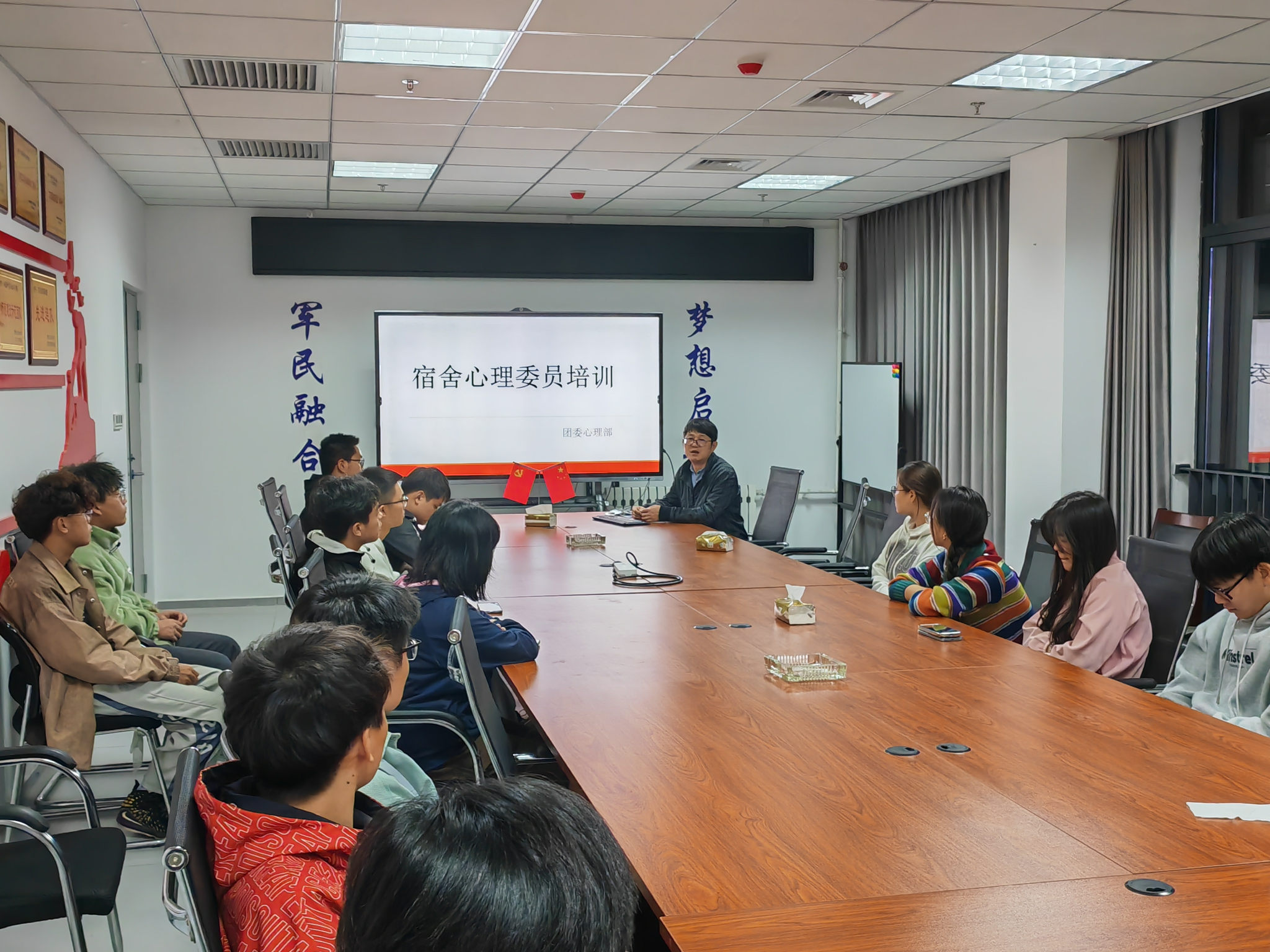 2023年10月19日晚8点,太阳成集团tyc122cc在教8—615召开宿舍心理委员培训座谈会。会议由王国栋老师主持,参加会议的有2021级、2022级各宿舍心理委员及团委心理部。