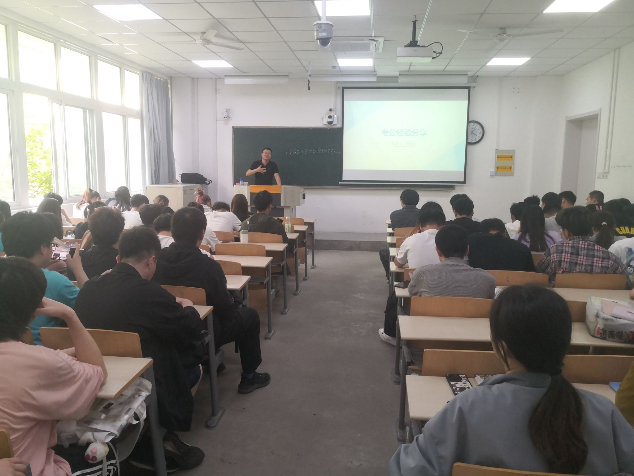 李树学首先简单叙述了自己的考公经历,并和同学们分享了几个考公中的常见误区。又就考公是否需要报培训班给出了自己的建议,让各位同学根据自己的实际情况进行选择。为了让在座的同学们了解考公的题目类型,李树学员工还准备了一些考公的原题进行讲解。并在交流互动环节传授了一些自己的心得体会,以帮助有意向的同学们更好的备战考公。