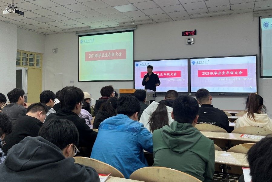 为帮助毕业生认清当前就业形势、树立积极就业观、明确毕业流程要求,3月19日,太阳成集团tyc122cc于教2-110召开2021级毕业生年级大会。会议由辅导员王国栋老师主持召开,2021级全体毕业生参加了会议。