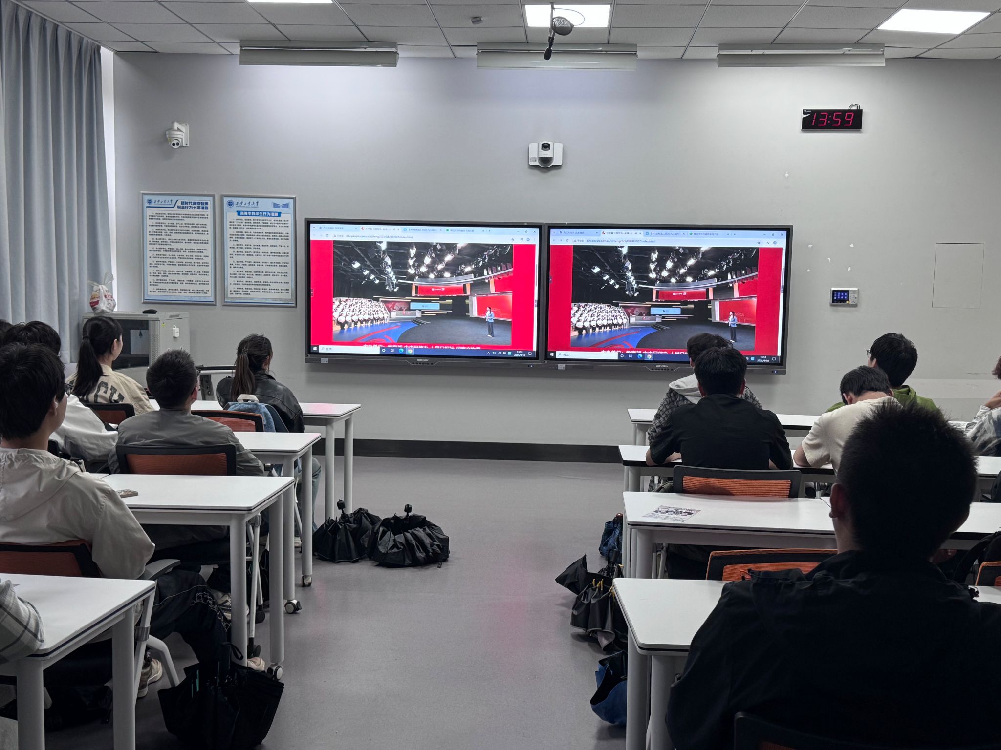 2025年9月18日太阳成集团tyc122cc以班级为单位,通过线下班会的方式观看“同上一堂思政大课之大国担当”,让思想之光点亮青春航程。