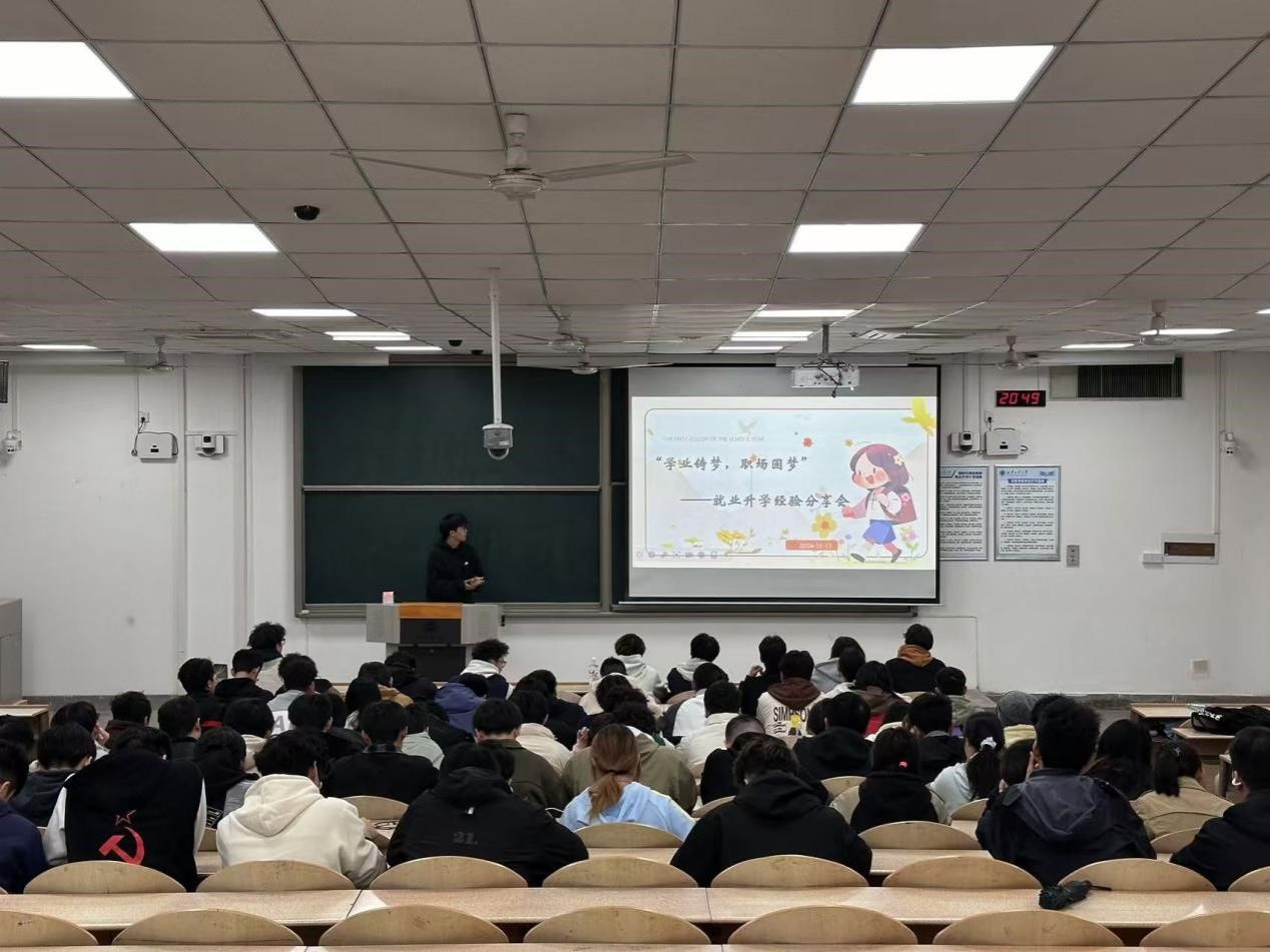 李欣岫开场便深入分析了当前就业形势,用详实的数据和生动的案例,让同学们清晰认识到就业竞争的激烈。在讲解考研与就业的抉择时,他客观地阐述两者的利弊,引导同学们结合自身情况思考。对于就业方向,李欣岫依据专业特点,介绍了多个有潜力的行业领域,拓宽了同学们的视野。接着,他结合自身经历,讲述了他的推免过程。同时,参照公司下发文件,详细解读了推免条件以及所需付出的努力,鼓励同学们积极争取推免机会,为大家指明努力的方向。最后,他还介绍了一些公司的的推免加分项目,有效解决了同学们在推免方面的诸多困惑。他的讲解全面且细致,每一个环节都紧紧围绕同学们关心的问题展开,无论是对就业考研形势的分析,还是推免相关内容的解读,都让同学们收获颇丰,为大家在未来发展道路的选择上提供了有力的指导。