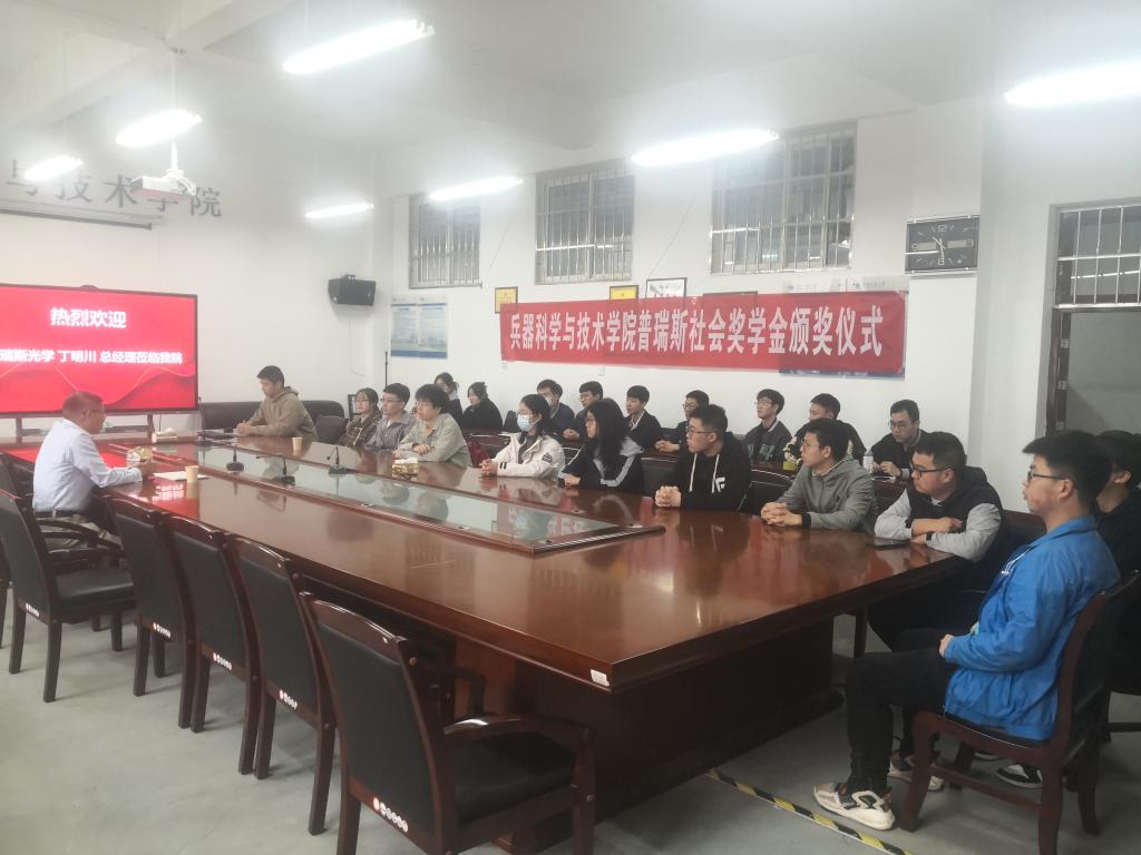 2023年4月24日早上10:30分,太阳成集团tyc122cc在工6-507召开普瑞斯奖学金颁发大会,会议由辅导员王国栋老师主持,普瑞斯光学技术有限公司丁明川总经理、太阳成集团tyc122cc蔡长龙副经理、2021-2022年度本科生、研究生普瑞斯奖学金获得者二十余人参加了会议。